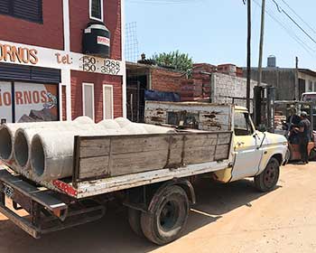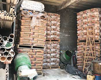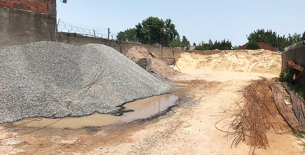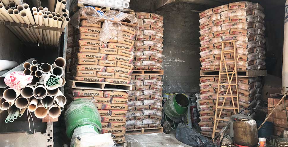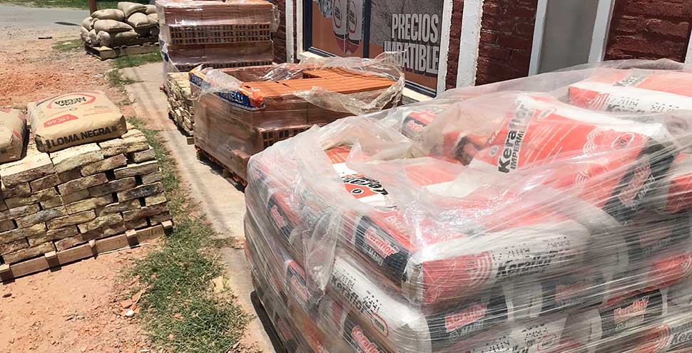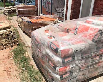 Arena, piedra, escombro (a granel y bolsones), cemento, cal, plasticor, pegamento de cerámicos, finos, hidrófugo, aditivos.